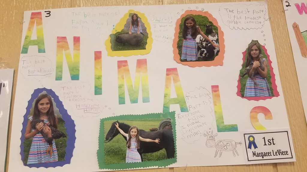 She took first place for her ANIMALS poster, and her agriculture poster got 2nd place. Soaps, embroidery, sewing, and acrylic painting were all a part of her impressive entry package – all of her submissions doing well! Her bunny, Kisses, also participated in the show. He hopped for 9th place, Margaret said “He was not having it being away from his air conditioning.” Maybe next year Kisses will be able to keep up with Margaret’s prize pulling power.